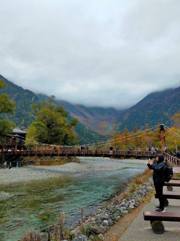あいにくの天気でしたが、河童橋はいつも混んでいます。