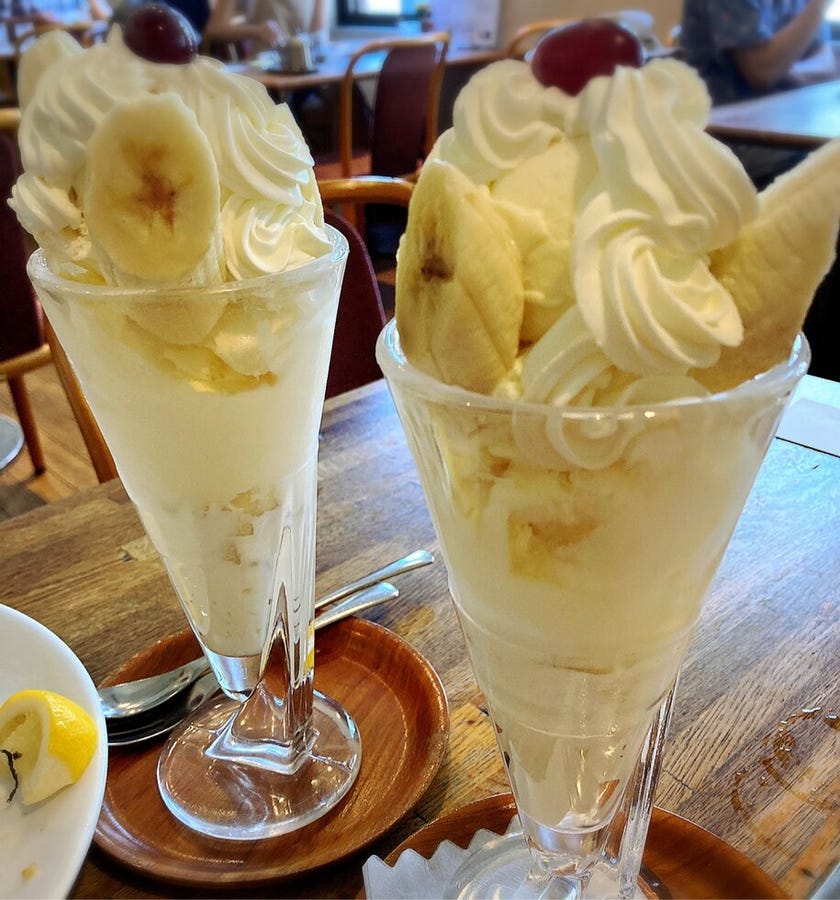 病院の後はたまに無性に食べたくなる「翁堂」のバナナパフェ♡行きました。